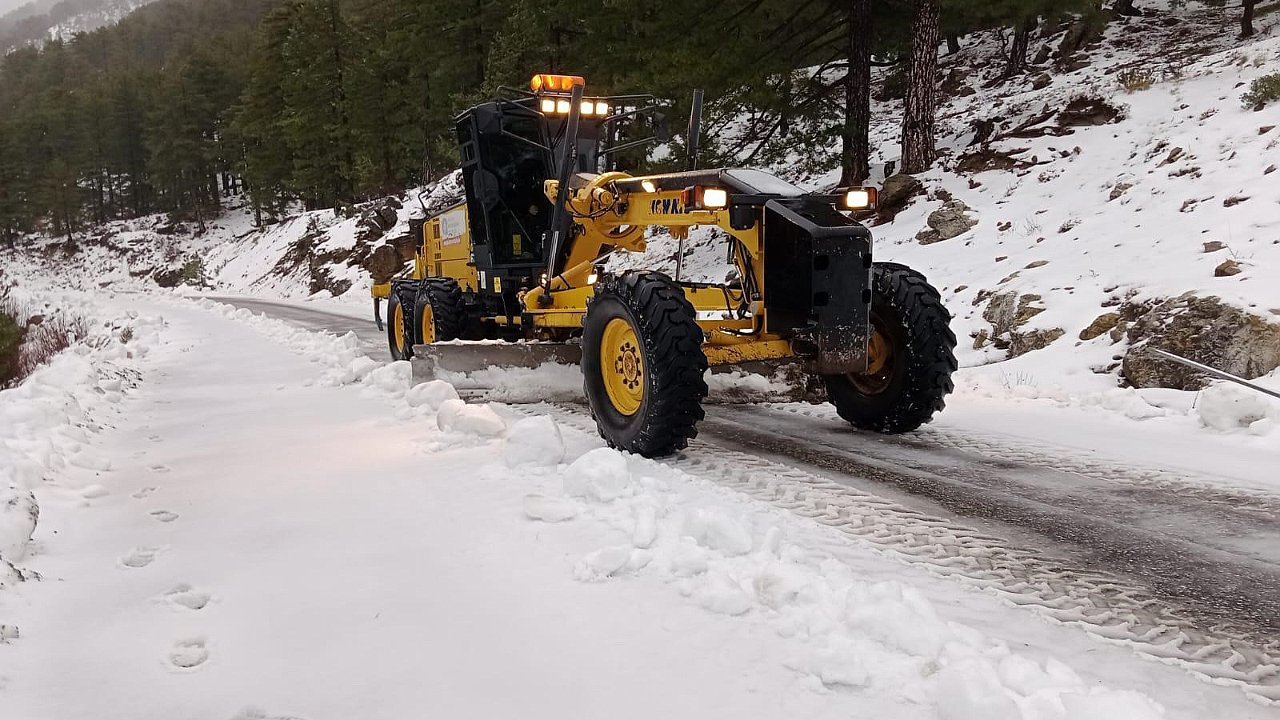 Alanya'nın yüksek kesimlerinde karla mücadele çalışması sürüyor