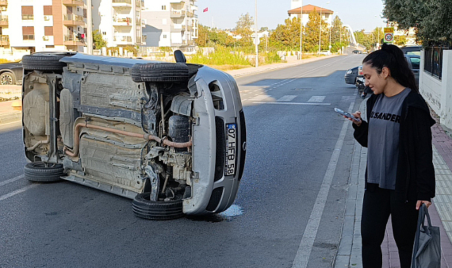 Kaza, dün Örnek Mahallesi 1525 Sokak'ta meydana geldi. Alınan bilgiye göre, Fatma Melda Öztürk'ün kullandığı 07 HFB 58 plakalı otomobil, sürücüsünün kontrolünden çıkıp kaldırıma çarparak devrildi. İhbarla kaza yerine itfaiye, sağlık ve polis ekipleri sevk edildi. Olay yerine gelen ekipler araçtan çıkan Öztürk'ün sağlık durumunu kontrol ederken, genç kız kendisini iyi hissettiğini belirterek hastaneye gitmeyi kabul etmedi.
