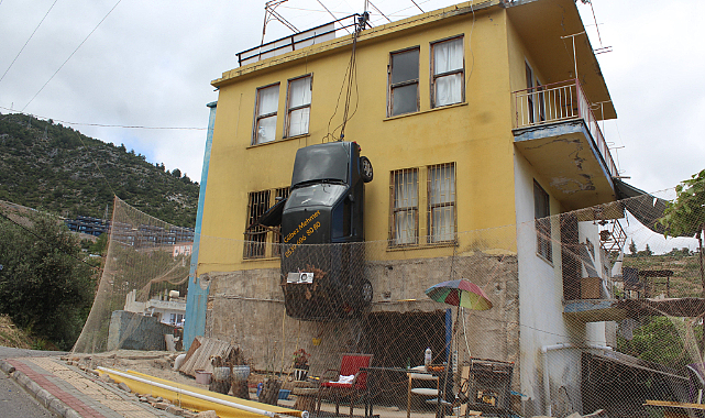 Alanya ilçesinde yaşayan vatandaşın yaptığı trafik kazası sonrası ceza olarak yaşadığı evin duvarına astığı otomobil, yaklaşık 3 aydır aynı şekilde duruyor. Çevreden geçen vatandaşlar asılı halde duran aracı ilk kez gördüklerini belirtirken, araç sahibi ise otomobil için çok sayıda teklif geldiğini ancak satmayı düşünmediğini söyledi.