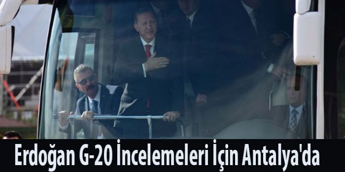 Cumhurbaşkanı Recep Tayyip Erdoğan, Antalya'da 15- 16 Kasım tarihlerinde gerçekleşecek G-20 Liderler Zirvesi'ne yönelik hazırlıkları yerinde incelemek için öğle saatlerinde Antalya'ya gitti.
