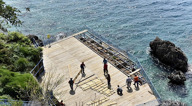 Muratpaşa Belediyesi’nin Antalyalıları falezlerden Akdeniz’in mavilikleriyle buluşturduğu falez plajlarında yeni sezon hazırlıkları başladı. İnciraltı Plajı’nda kış dolayısıyla sökülen ahşap zeminlerin montajı devam ediyor.