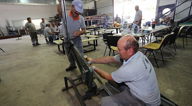 Kepez üretiyorDemir atölyelerinde üretilen kamelyalar, piknik masaları ve oturma grupları gibi birçok el emeği, üretimin ardından yine belediye işçileri tarafından belirlenen yerlere monte ediliyor. Demir İşleri Atölyesi, sadece üretmekle kalmayarak, eskiyen ve kullanılmayacak durumda olan mobilyaları ahşap atölyesi ile beraber tek tek toplayarak, bakım ve onarım işini de gerçekleştiriyor. Kepez Belediyesi Park ve Bahçeler Müdürlüğü bünyesinde kurulan ahşap ve demir atölyeleri sayesinde, ihtiyaç duyulan ilçe mobilyaları, dışarıdan satın almak yerine tecrübeli belediye personeli tarafından üretiliyor.
