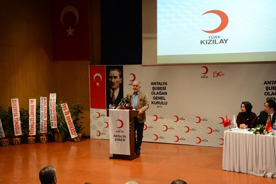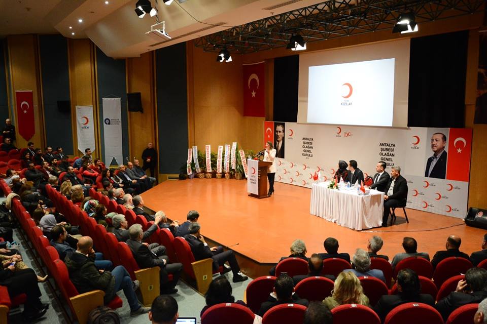 GENEL KURULDA TEK LİSTETürk Kızılayı Antalya Şubesi'nin Olağan Genel Kurul Toplantısı, Atatürk Kültür Merkezi'nde (AKM) gerçekleştirildi. Toplantıya, Antalya Vali Yardımcısı Hamdi Bolat, Kızılay Genel Başkanı Dr. Kerem Kınık, Kızılay Genel Başkan Yardımcısı İsmail Hakkı Turunç, Yönetim Kurul Üyesi Cengiz Yurdabekçi, Kızılay Genel Müdürü İbrahim Altan katıldı. Tek listenin yer aldığı genel kurulda 4 dönem Şube Başkanlığı görevini yürüten Dr. Cengiz Nizam başkanlığı AK Parti Antalya Kadın Kolları eski Başkanı Esra Özkoç'a devretti.