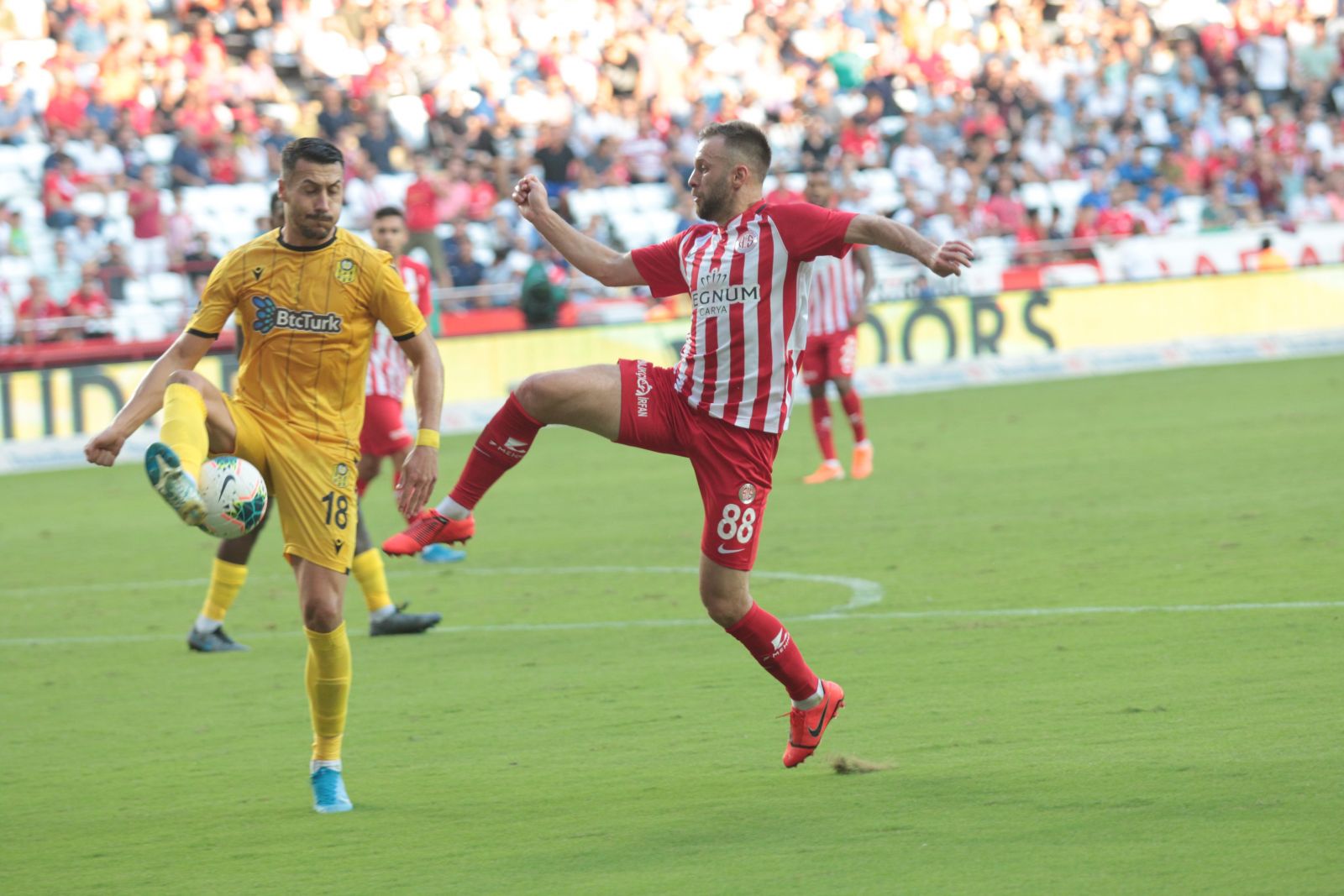 Süper Lig Cemil Usta Sezonu 6'ncı hafta karşılaşmasında Antalyaspor, BTC Türk Yeni Malatyaspor'u 3-0 mağlup etti. İlk 20 dakika orta alan mücadelesi şeklinde geçse de topa daha çok sahip olan taraf Antalyaspor oldu. 22'nci dakikada net bir fırsat yakalayan konuk takım, arka direkte topla buluşan Donald ile golü kaçırdı. Mücadelenin 38'inci dakikasında sol kanattan gelişen atakta Aatif Chahechouhe topla buluştu ve ceza alanı dışından çektiği şutla Antalyaspor'u 1-0 öne geçirdi. İlk yarının kalan dakikalarında başka gol olmayınca devre kırmızı beyazlı takımın 1-0 üstünlüğü ile tamamlandı.