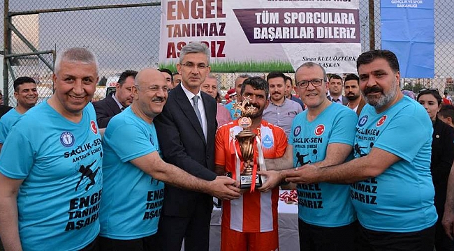 ‘ONLAR GiBİ HİSSETTİK’Bu yıl “Engel Tanımaz Aşarız” sloganı ile gerçekleştirdikleri projede toplumda bir farkındalık oluşturmayı amaçladıklarını belirten Sinan Kuluöztürk, Engelli vatandaşlarla spor müsabakasında karşı karşıya gelerek, yeşil sahada nasıl azimle, hırsla mücadele ettiklerine şahit olduklarını söyledi. Kuluöztürk, “Ampute takımına karşı koltuk değnekleri ile bir süre aynı şartlarda rekabet ettik. Zoru nasıl başardıklarına şahit olduk. Kardeşlerimiz engellerine rağmen kupayı kazandı. Aslında onlar bizlere hayatta hiçbir şeyin engel olmadığını, başarının azim ve gayretle olabileceğini gösterdiler. Biz de onların alınlarından öptük, onurlandırdık.” dedi.‘BİRLİKTE NEFES ALIYORUZ’Dünya Sağlık Örgütü tarafından 2011 yılında yayınlanan Engellilik Raporu’nda, dünya nüfusunun yaklaşık yüzde 15’ine karşılık gelen 1 milyardan fazla insanın engelli olduğunu aktaran Kuluöztürk, Türkiye’de bu sayının ülke nüfusunun yüzde 13’üne tekabül ettiğini hatırlattı. Yaşamın bir çok alanında engeller ile karşılaşan engelli bireylerin farkına varılması ve onlarla birlikte nefes aldığımızın unutulmaması gerektiğinin altını çizen Sağlık Sen Şube Başkanı Kuluöztürk sözlerini şöyle noktaladı: “Hayata engelli başlamak veya devam etmek bir tercih değil, sonuçtur. Engellilik, insanların kendisinin seçmediği ve hayatın değişmez bir gerçeğidir. Bu gerçeklik, hayatımızın ayrılmaz bir parçasıdır“Hepimizin bir engelli adayı olduğu unutulmamalı, Engelliler yardıma değil, şefkate muhtaçtır. Engellilerin de, hayatlarını sürdürebilmeleri için, çalışmaları ve gelir sağlamaları gerekir. Engellilere saygı, onlara yaşama sevinci verir. Dolayısıyla engelli vatandaşlarımıza yönelik, özel sektördeki pozitif ayrımcılık alanları genişletilmeli, kamu desteği artırılarak engelli istihdamı bir mağduriyet olarak görülmekten çıkarılmalıdır ve Aynı zamanda gündelik hayatta yaşamlarını kolaylaştırıcı tedbirler arttırılmalıdır”