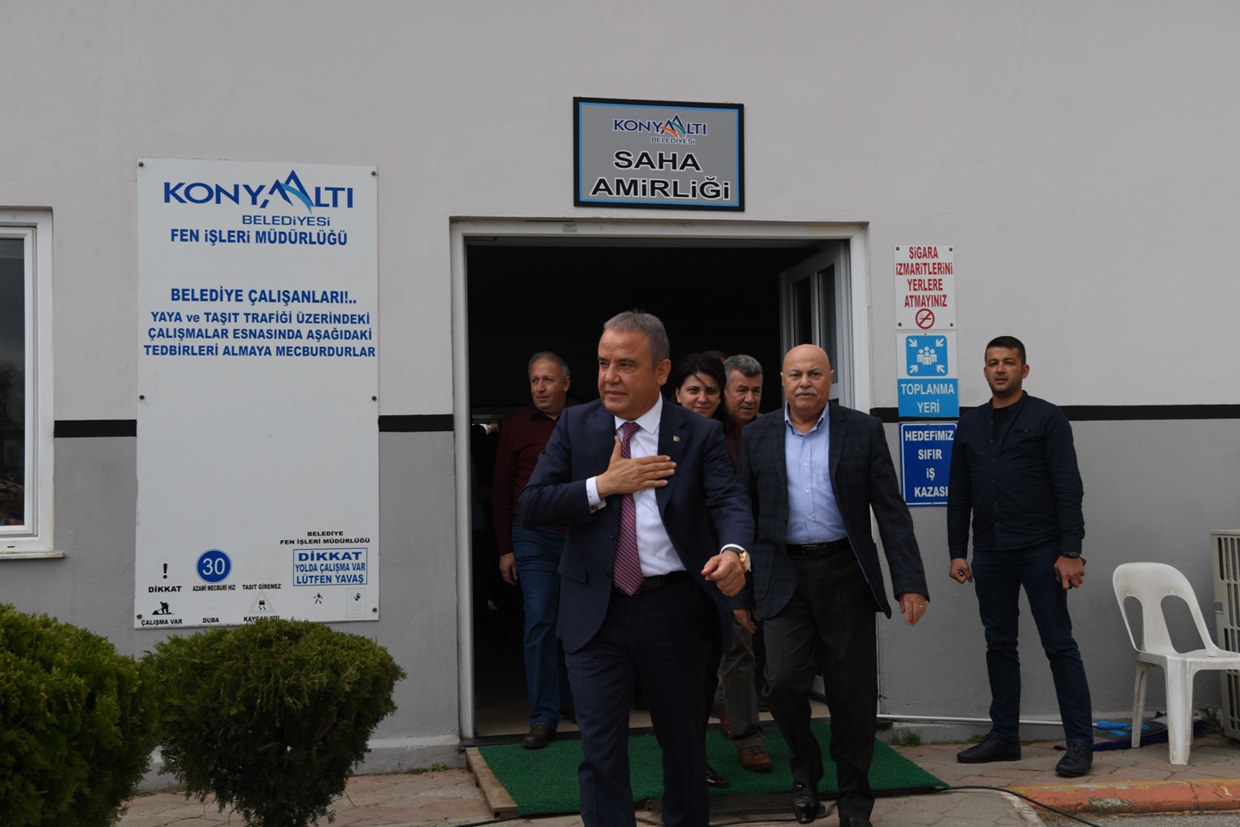 4 dönemdir Konyaaltı Belediye Başkanlığı yapan ve 31 Mart Mahalli İdareler Yerel Seçimlerinde Cumhuriyet Halk Partisi’nden Antalya Büyükşehir Belediye Başkanı adayı gösterilerek, seçimleri kazanan Muhittin Böcek, 20 yıldır birlikte çalışma personeliyle vedalaştı. Başkan Muhittin Böcek, ilk olarak Fen İşleri Müdürlüğü Saha Amirliği’nde Fen İşleri, Temizlik İşleri, Veterinerlik ve Park ve Bahçeler Müdürlüğü personeline veda etti. Başkan Böcek, daha sonra merkez binada tüm personel ile bir araya geldi.