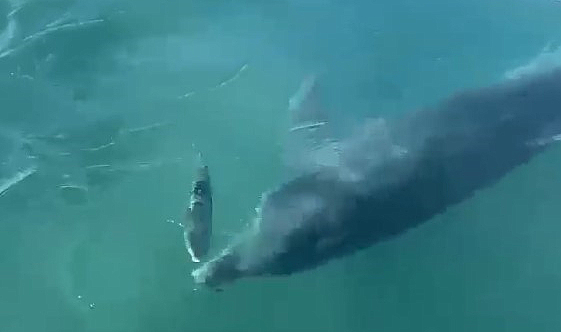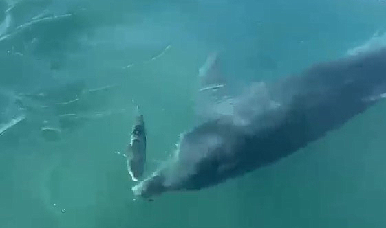 Serik ilçesi Belek Sahili'nde balıkları kovalayan bir yunus, hızla kıyıya yaklaştı. Bu sırada sahildekiler büyük bir heyecan yaşadı. O anlar anbean cep telefonu ile kaydedildi. Yunusun su yüzeyindeki hareketleri ve balıkların kaçışı sahildeki herkesin ilgisini çekti.